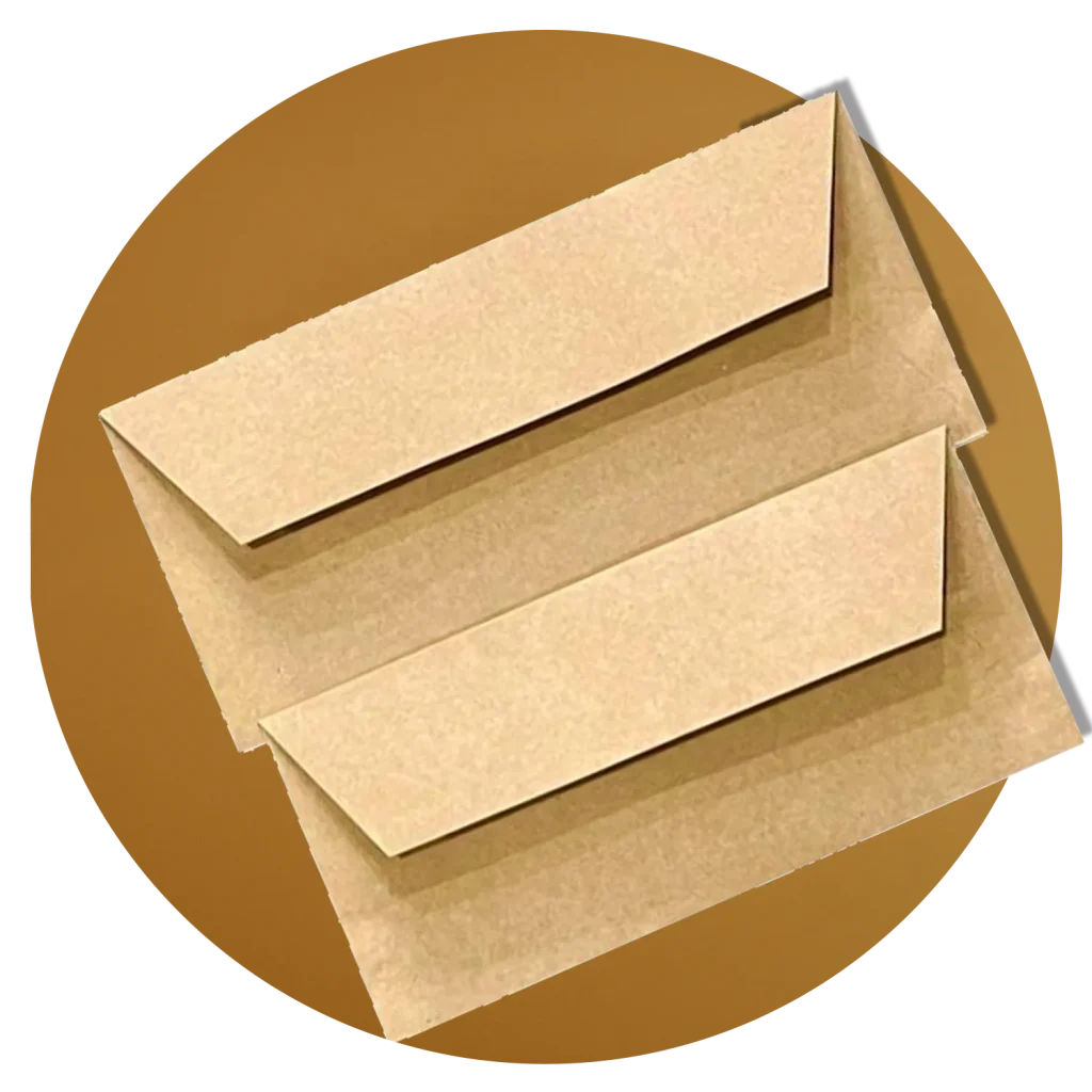 ما از انواع کاغذ تحریر، کتان، گلاسه، کرافت، مقوای پشت طوسی و حبابدار استفاده میکنیم. انتخاب نوع جنس به کاربرد و بودجهی شما بستگی دارد.